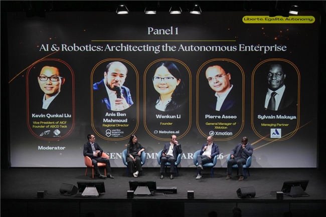 法国AI企业艾比特科技创始人、AICF副会长刘群凯主持了以“AI与机器人:重塑自主时代的产业价值链”为主题的圆桌论坛。论坛汇聚了来自中欧人工智能与具身智能领域的领先企业及投资机构代表,包括智元机器人与欧洲联合机器人集团等。与会嘉宾围绕人工智能驱动下产业价值链的重塑路径展开深入探讨,并就AI时代对人才结构与能力模型的变革进行了前瞻性交流。